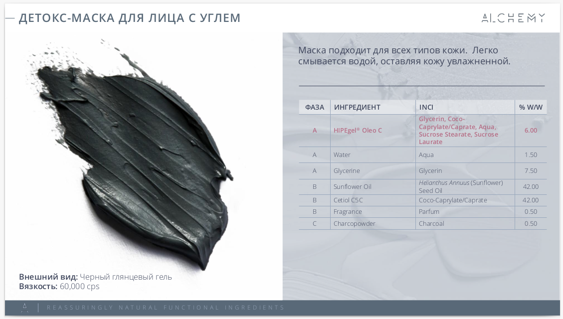 Рекомендации по вводу: 5,5 — 6 % В рецептуру можно вводить воду до 5%, включая водорастворимые активные ингредиенты.
